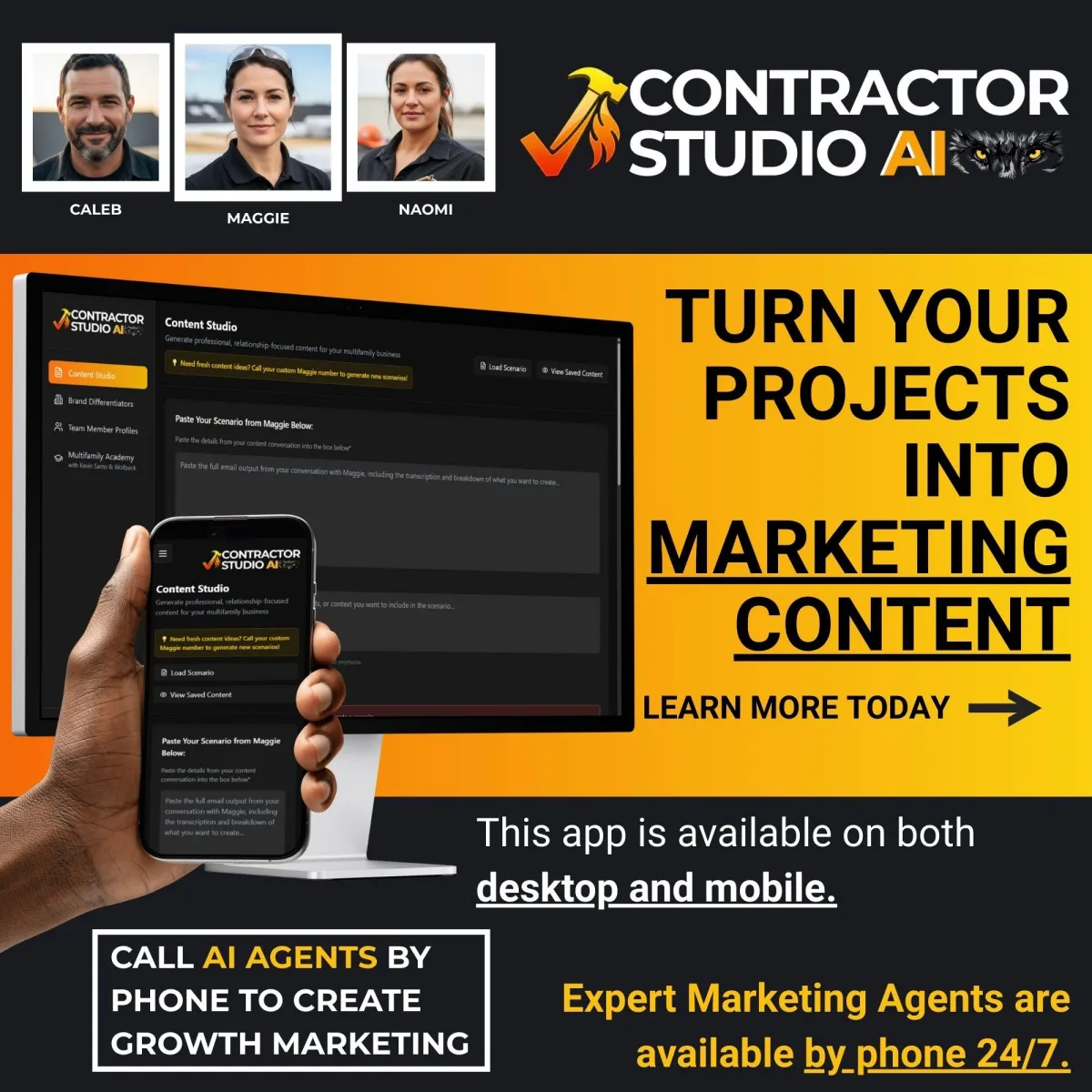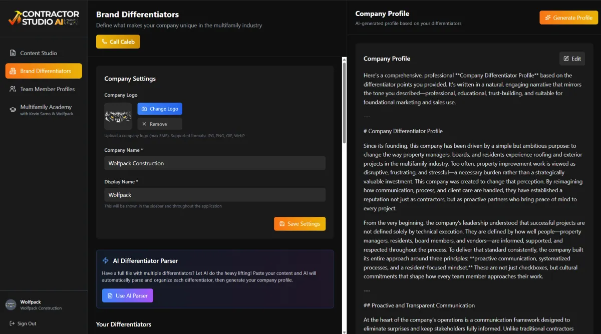 ✅ Contractor Studio AI Platform - Unlimited, one-click generation of case studies, posts, and emails.